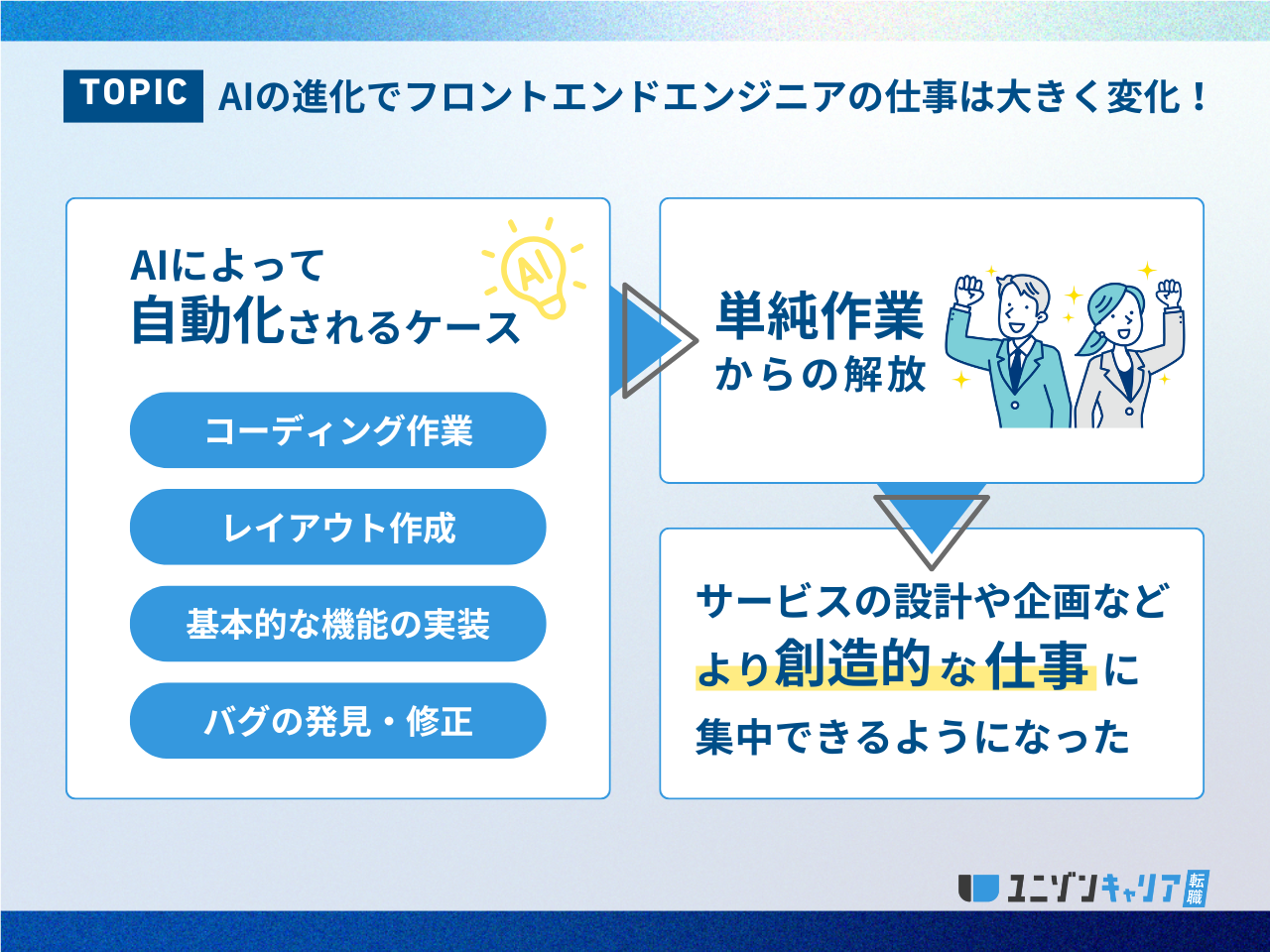 近年、フロントエンドエンジニアが行っていたコーディング作業の一部は、AIによって自動化が進んでいます。