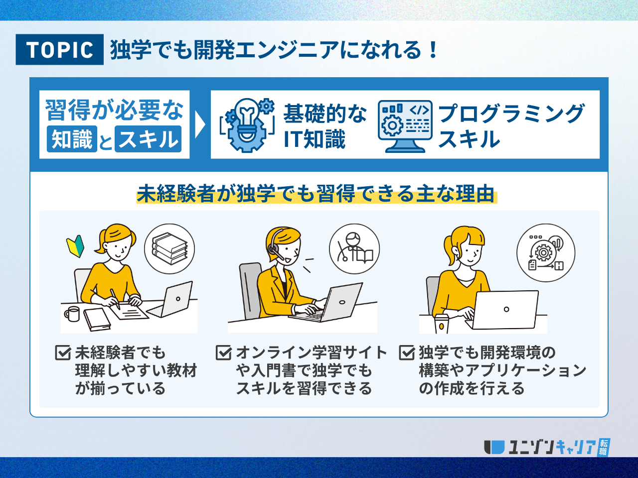 独学での開発エンジニア転職を考えている方はユニゾンキャリアにご相談ください。