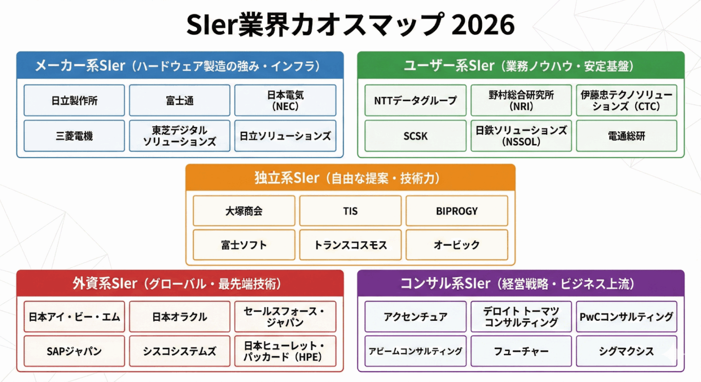 SIer業界の地図を読み解くことで、企業ごとの力関係や安定性が見えてくる。