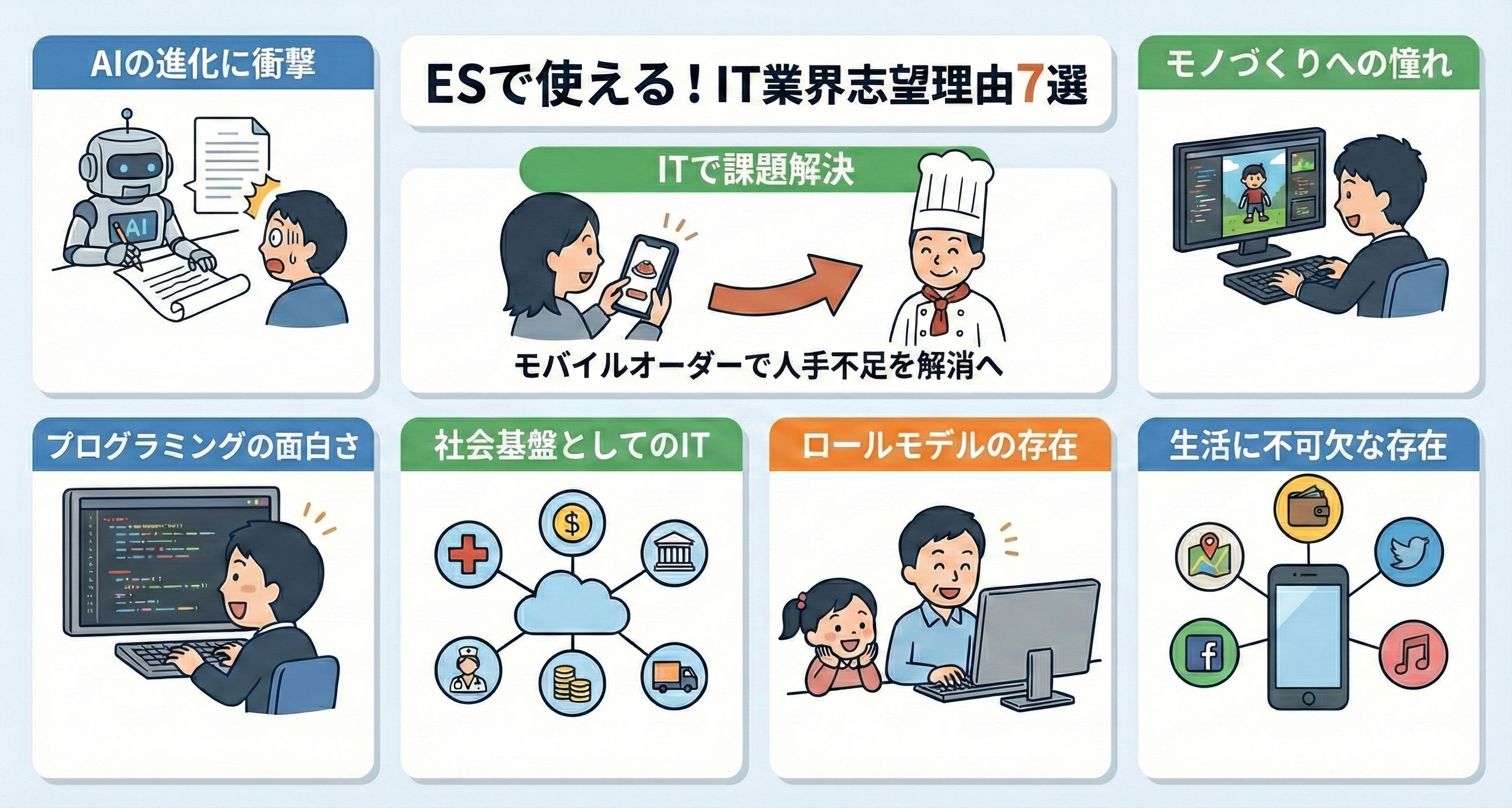 就職活動のESや面接において、「なぜIT業界に興味を持ったのか」という質問は多い。