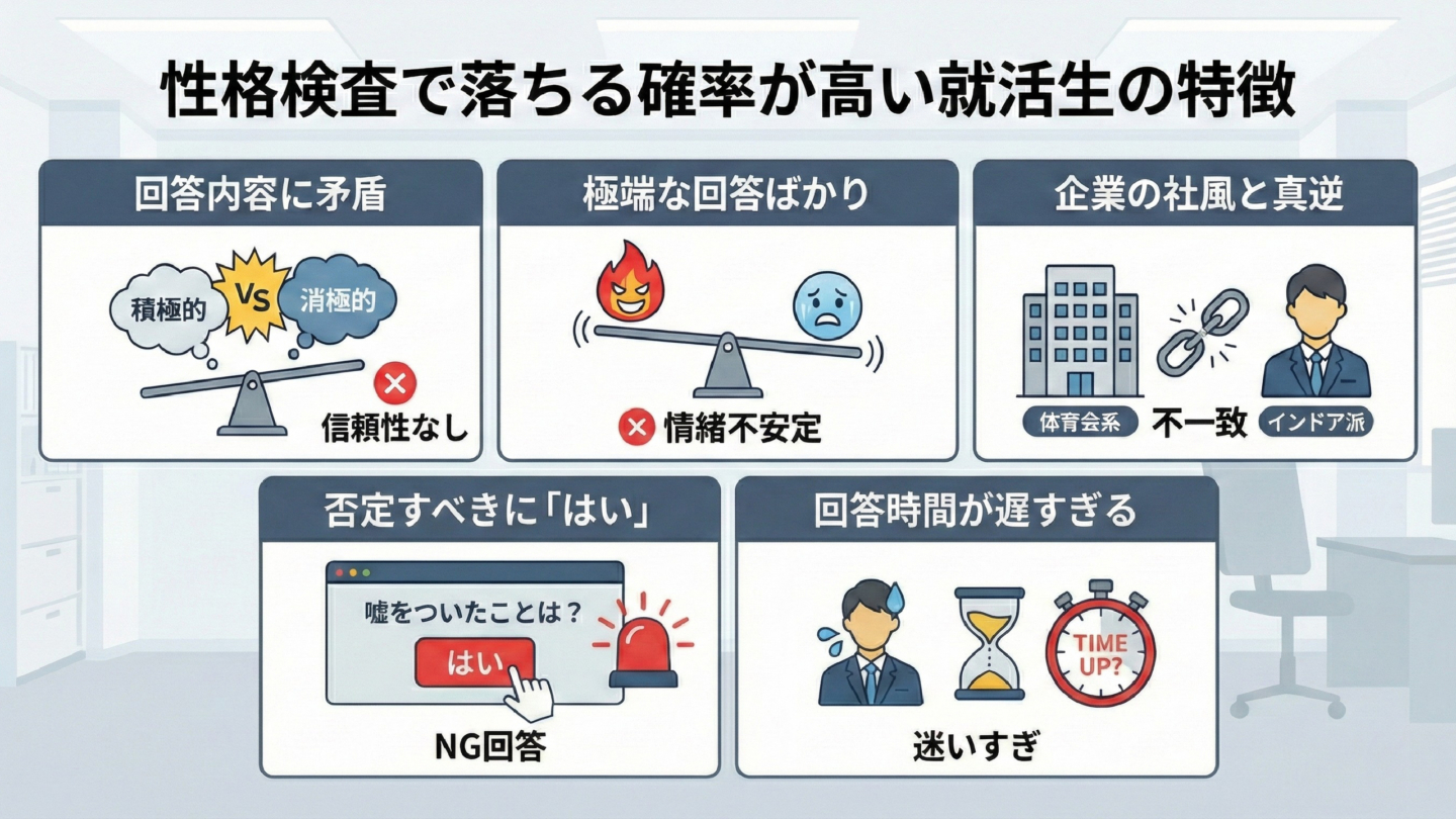 一貫性の欠如は、性格検査において減点対象の一つであり、落ちる直接的な原因になり得る。