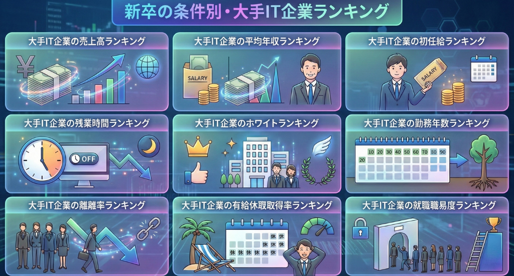 この記事では、年収や残業時間などのデータに基づき、新卒におすすめのホワイトな大手IT企業をランキング形式で紹介していく。